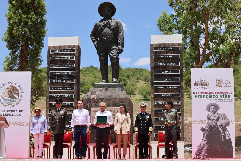 En San Juan del Río, Durango, el presidente López Obrador, encabezó la conmemoración por el centenario de la muerte de Francisco Villa.